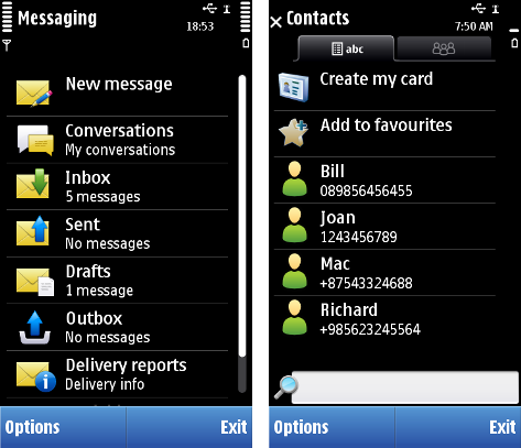 Typically, the user can open items in a selection list, leading into another, more detailed view of the item within the application. In addition to browsing and selecting items, other functions are available in the Options menu (see Options menu ).