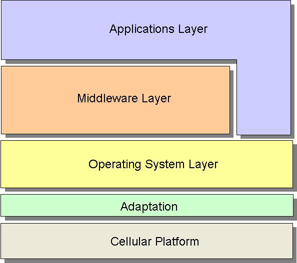 The Adaptation layer integrates the generic platform software with the phone’s cellular platform. It is implemented by the device creators though reference implementations are provided with the platform.