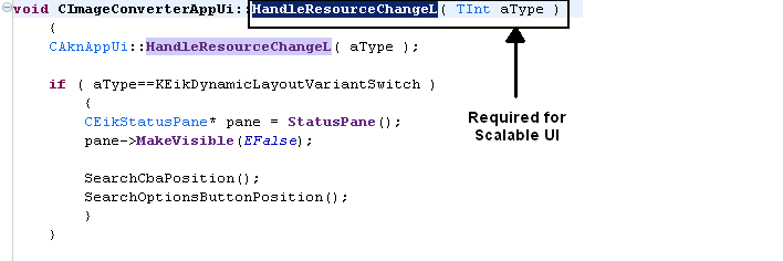 The following figures illustrate code required for handling scalable UI events.