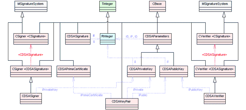 CRSAParameters , CDSAParameters , and CDHParameters are the base classes that allow a client to use the supported asymmetric algorithms listed above. The classes hold the domain parameters used by the public key algorithms. They are used by some of the asymmetric algorithms to define some common mathematical structures used by the encryption or signature processes.