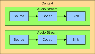 Furthermore, one or more audio streams can be grouped into a logical unit called a context. The following diagram shows a context which contains two audio streams: