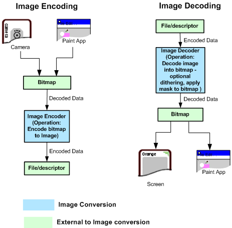 Image Conversion is primarily used for Image Encoding and Image Decoding. The following diagram shows how the Image Encoding and the Image Decoding interacts with other components.