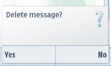 A confirmation query requests the user to confirm an operation, or asks a Yes-No-type of question. It can be used e.g. to make sure that the user does not accidentally delete important information or start an operation which cannot be cancelled. A touch down and release on the query has no effect. Confirmation query cannot be dismissed by tapping outside.