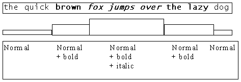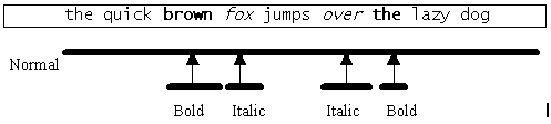 The following diagram demonstrates the system of based-on links when attributes are applied to different parts of text rather than added on top of existing attribute layers.
