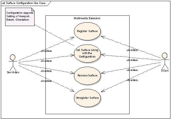 There are two main use cases for using external surfaces in this way. One is to display a video, in which case DevVideo renders the content. The other main use case is an OpenGL ES background surface, in which case the client issues OpenGL ES rendering commands. This topic covers how to get the surface onto the screen and not rendering the content to the surface.