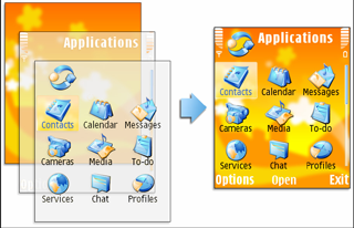 A UI theme is a customized graphical user interface (GUI) that replaces the phone's default look, and it is used to change the appearance of the user interface for the phone's applications. A phone with the Symbian user interface may provide several UI themes of which the user can activate one theme at a time. By activating a UI theme, the visual appearance of the user interface is changed. Note that this setting only affects visual elements, e.g. functions, the interaction style or language settings are not affected.