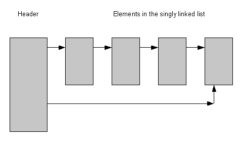 Unlike a doubly linked list, elements do not point back to the previous element. The list has an anchor point which points forwards to the first element and also has a pointer to the last element.