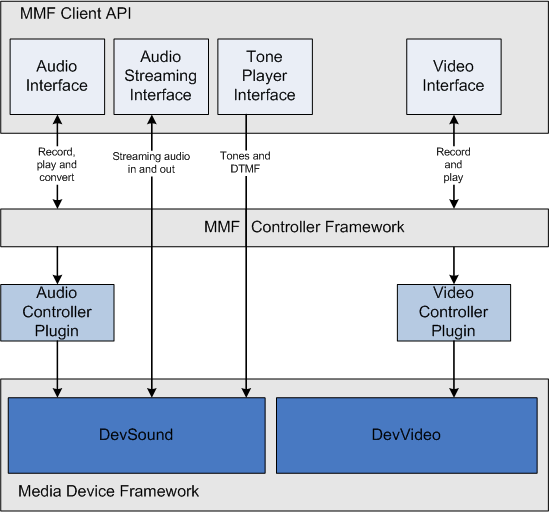 Multimedia Framework (MMF) provides several client interfaces that encapsulate a lightweight plugin framework. These interfaces enable you to manipulate the audio and video features of the Symbian platform.