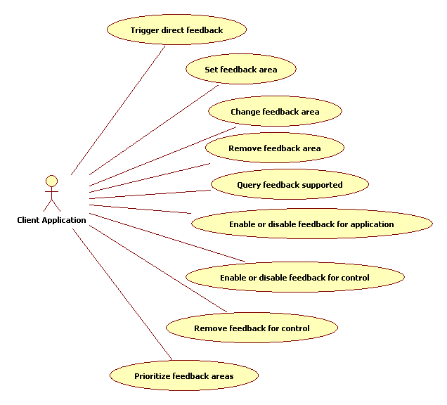 The Tactile feedback client API provides area registry based feedback and direct feedback to Symbian applications and UI components. You can use the API to add, modify and remove feedback areas, trigger direct feedback and disable feedback for certain UI components or the whole application.