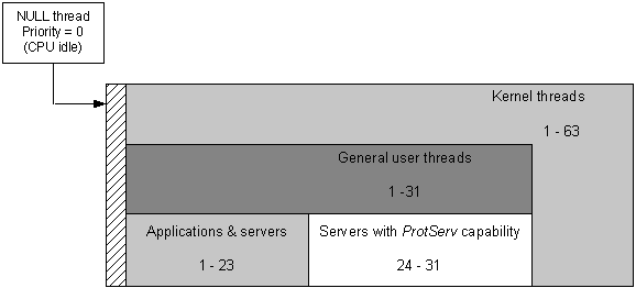 True priority values in the shaded region can only be accessed by threads running in processes with the ProtServ capability.