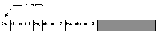 This is a CArrayPakFlat<class T> object whose elements can have different lengths but are physically contiguous within a flat array buffer. Each element is preceded by a TInt value to record the length of that element.
