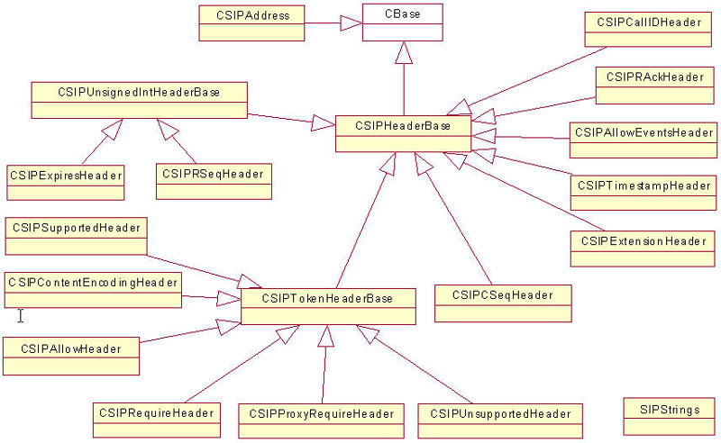 The SIP Codec API defines the functions required to create the SIP headers of a SIP message. CSIPHeaderBase is the base class for all SIP headers. A client creates a new instance of the CSIPXHeader class, where “X” is the name of the header required, and sets the values of the header with the setter functions of this class.
