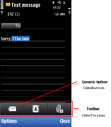 Button is a generic component, which may have touch down and release and/or touch down and hold functionality. Touch down and hold can be interpreted as touch down and hold or key repeat. Generic buttons can be placed, for example, inside the toolbar.