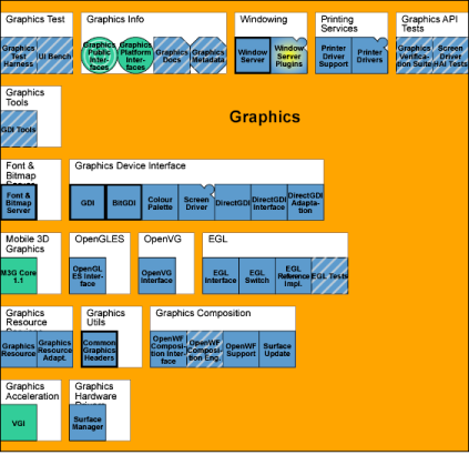 The Graphics package provides Symbian devices with a means of visual communication. It is responsible for providing a system-wide interface with the physical display(s) and handles input events from physical input devices such as keypads and touch screens.