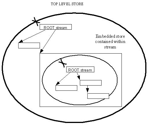 It is often convenient, and sometimes necessary, to collect the streams representing a partial object network into an embedded store. This makes it easier for the streams representing such a partial object network to be deleted, by deleting (from the top level store) the stream containing the embedded store.
