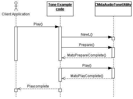 Client applications such as ringtone applications, use CMdaAudioToneUtility to generate the tones they produce. The tone player in turn uses MMF for playing sounds and is also credited for interfacing with the audio hardware. An active scheduler is needed for all the clients applications for the use of active objects and callbacks.
