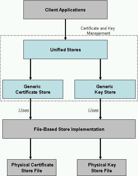 Unified Stores : The Unified Stores APIs form the primary access point for client applications to use certificates or keys stored in the device. The Unified Certificate Store provides a unified view of all the certificates in the device while the Unified Key Store provides a similar view of all the keys in the device.