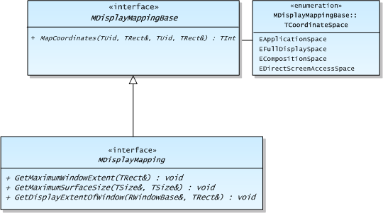 The MDisplayMapping interface is very flexible. UIDs are used to signify the application UI coordinate space, the full UI space, the composition/display coordinate space (which may be a different scale to the UI coordinate space) and the Direct Screen Access (DSA) space (which may match the full UI space, or be offset relative to the application UI space).