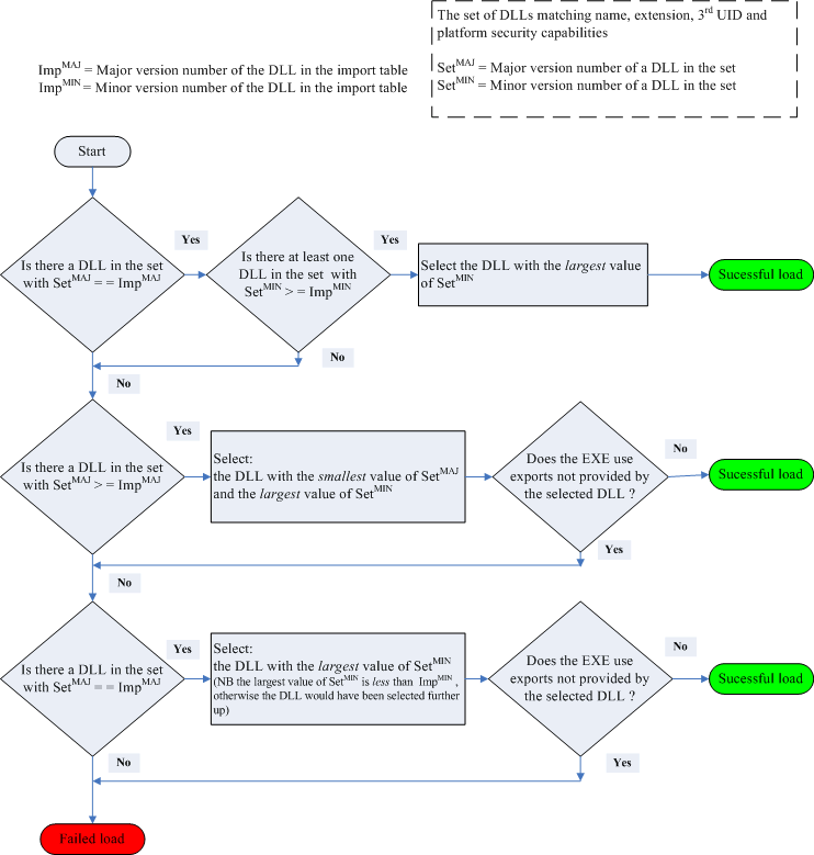 If you specify a version number in RLibrary::Load() , the loader selects a version of the DLL from the set. The following flowchart shows how the loader selects the DLL from the set of possible DLLs.