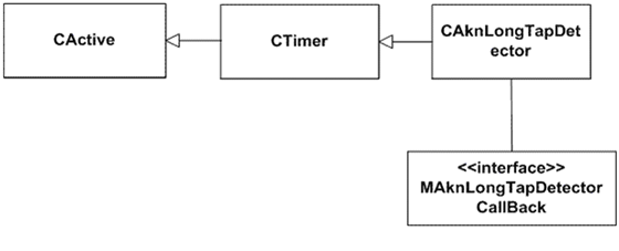 The class structure consists of the class CaknLongTapDetector . The MaknLongTapDetectorCallBack interface is used for notifying clients about long tap events.