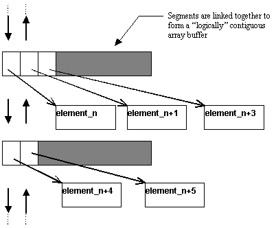 A segmented buffer is implemented as a doubly linked list of equally sized cells allocated from the heap and is always extended by allocating a new segment and inserting it into the appropriate place in the list. A segmented array buffer is implemented using a CBufSeg object.