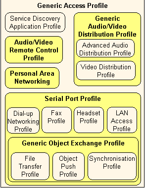 Figure 1 above shows the dependencies of profiles. The shaded profiles, discussed in the next section, are implemented by the Symbian platform Bluetooth subsystem.