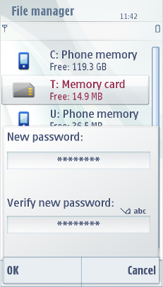 The softkeys of a Data query are OK on the left for accepting the input, and Cancel on the right softkey for discarding the query. The Selection key accepts the input in the same way as the left softkey.