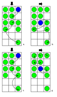Browsing towards the beginning of a row moves the focus to the previous filled cell on the same row, or continues searching from the end of the previous row. Using only the Arrow right or Arrow left key, the user can thus go through every item in the grid, regardless of the distribution of items in it.